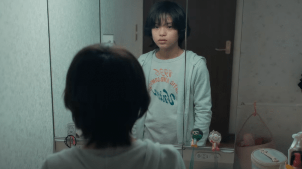 Saori the mother (Sakura Andô) concerned about her son’s behavior. She wants answers from the school and is met with nothing but robotic resistance and clear deception.