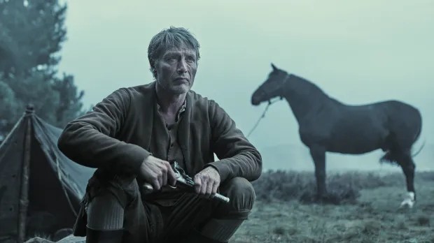 Mads Mikkelsen plays Ludvig Kahlen, the illegitimate son of an 8th-century Denmark estate owner and his housekeeper. Ludvig dreams of making a name for himself and leaving his miserable past behind. The Danish King wants to cultivate a barren wasteland called the Jutland heath. Many have tried and failed. Ludvig presents his plan to the council, and after much debate, the council begrudgingly accepts and send him on this fool’s errand to appease the King. If he is successful though, the King will give him a title and land. There’s a one in a million chance.