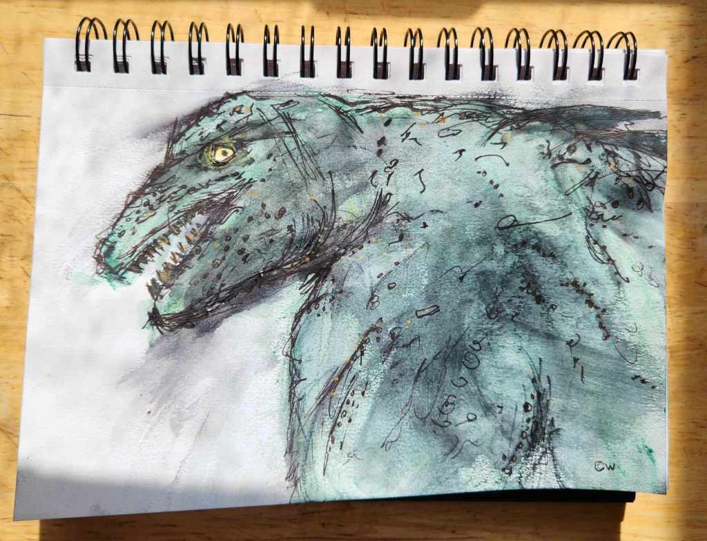 Case in point, this Godzilla watercolor pencil and ink I was working on. Not quite the Godzilla face I wanted to make but it’s progress. I’m learning to be okay with mistakes and use that to be more creative.
