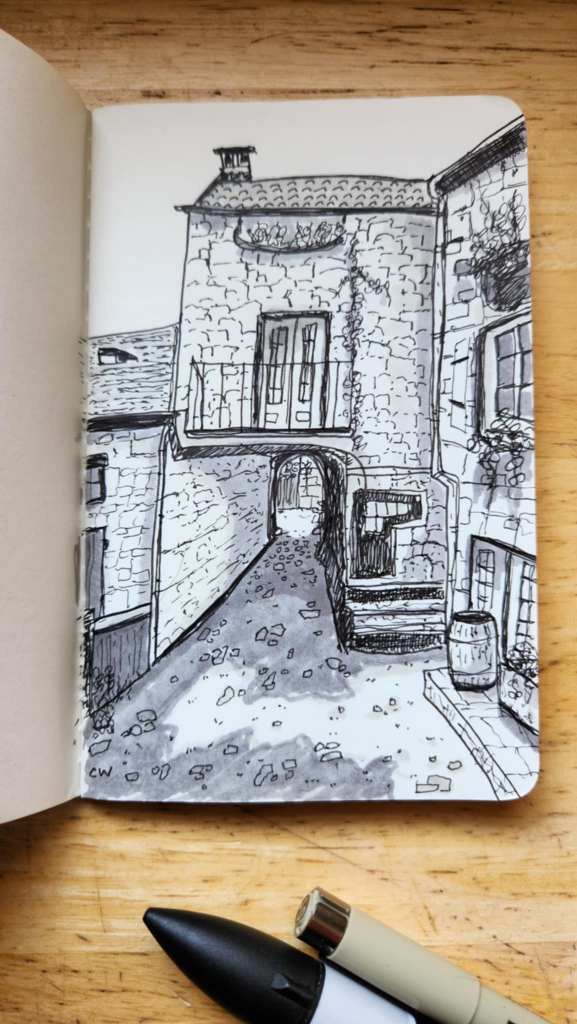 Here’s a little Italian villa I did on a work break. Pen and marker.