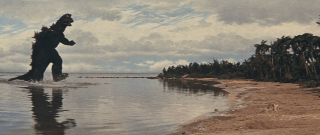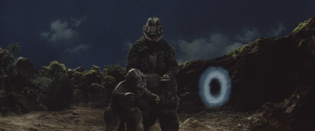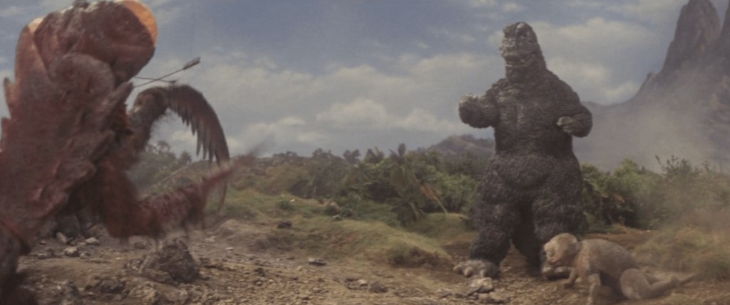 Kazuo Yamada‘s cinematography shines as well and really helps bring this film together. Some of the island battle scenes are so beautifully framed. I love some good up close kaiju fighting, but there’s just something magical about these medium and wide shots.